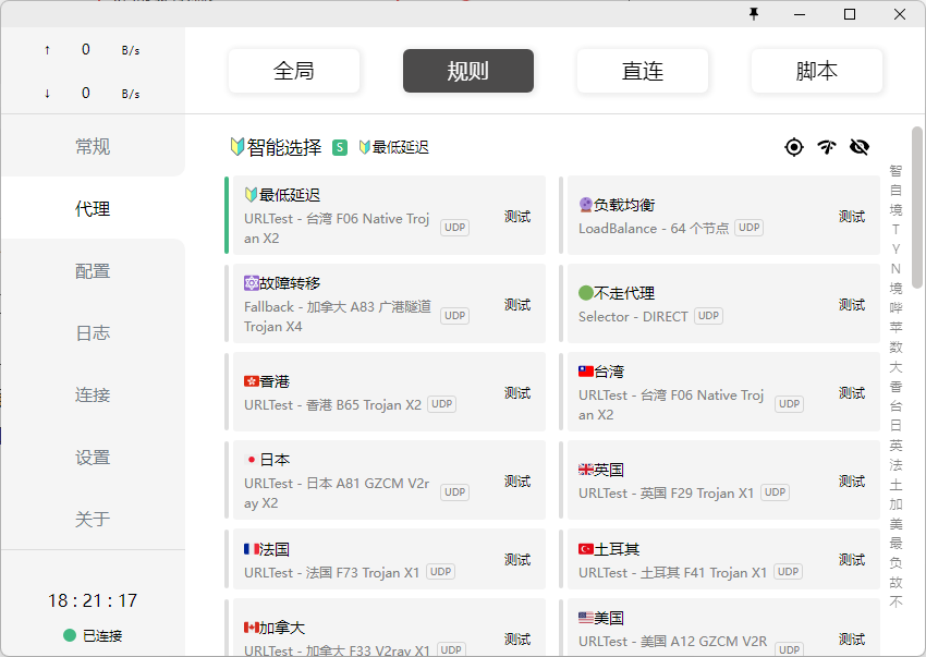 更强的地方在于还支持最低延迟、负载均衡、故障转移,让分流规则更加智能!尤其是故障转移,大大提升了节点使用的连通率!