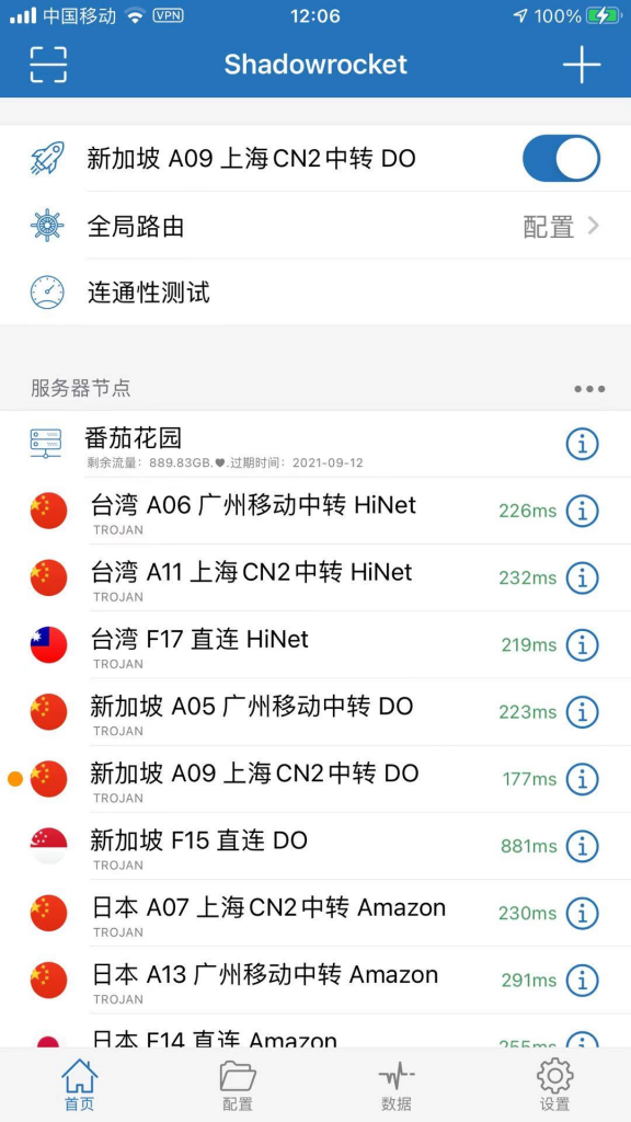 登录番茄花园官网 ,在 用户中心 选择 iOS 标签,在 Shadowrocket 点击“一键导入订阅”即可导入服务器节点。